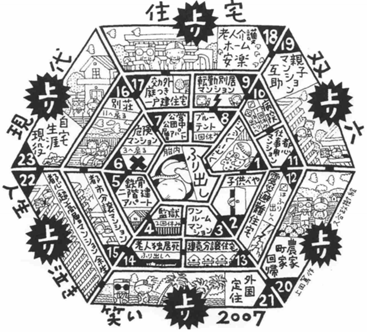 この変化を象徴するのが、2007年に新聞掲載された「新・住宅双六」(下図)である。かつて「郊外の庭付き一戸建て」一択だった人生の上がりは書き換えられ、ついに「都心の超高層マンション」が人生の新たなゴールの一つとして明確に位置づけられたのである。